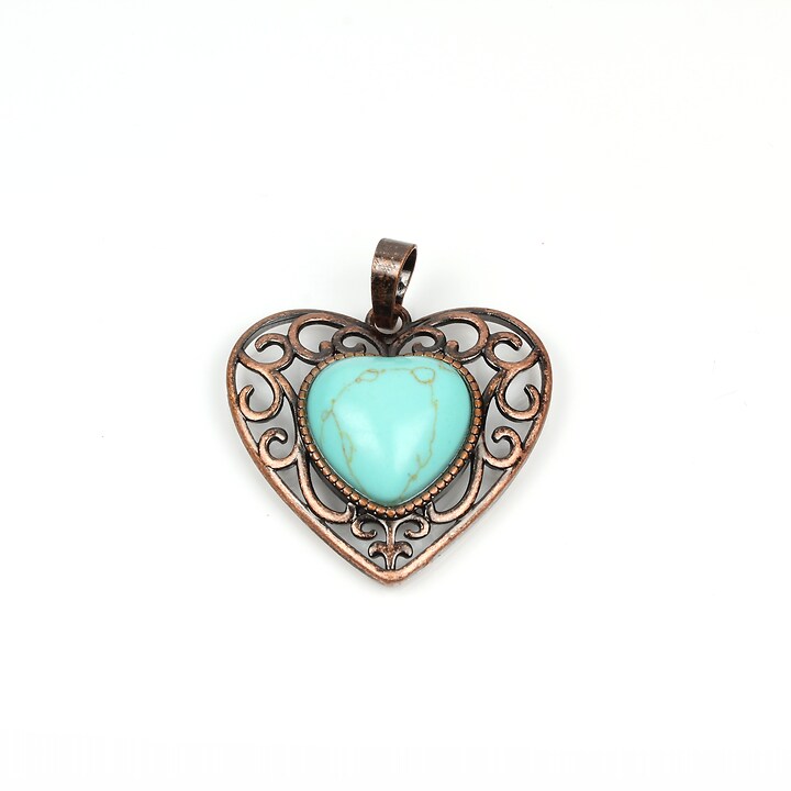 Pandantiv inima howlit turcoaz in montura cupru 30x30x7,5mm