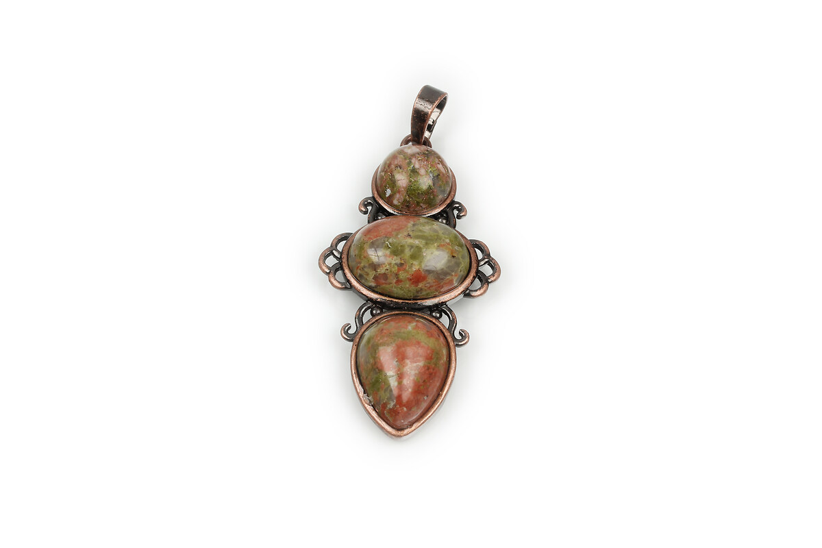 Pandantiv unakite in montura cupru 47x24x6,5mm