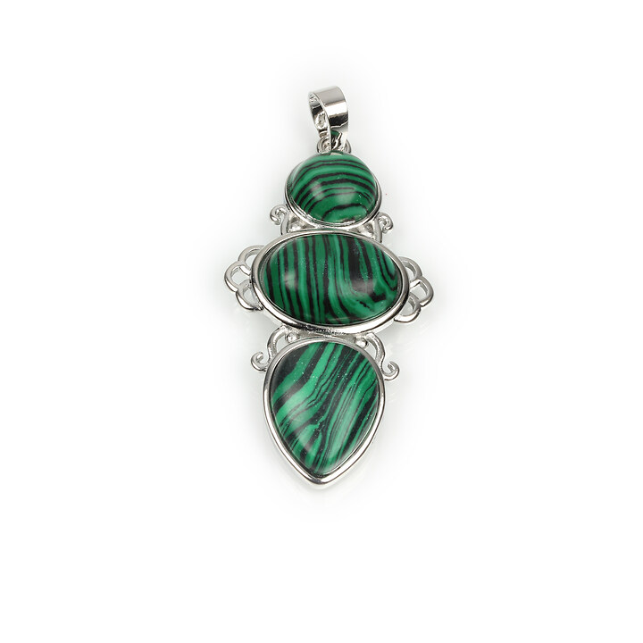 Pandantiv malachit in montura argintiu inchis 47x24x6,5mm