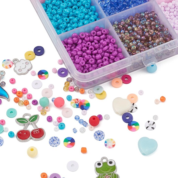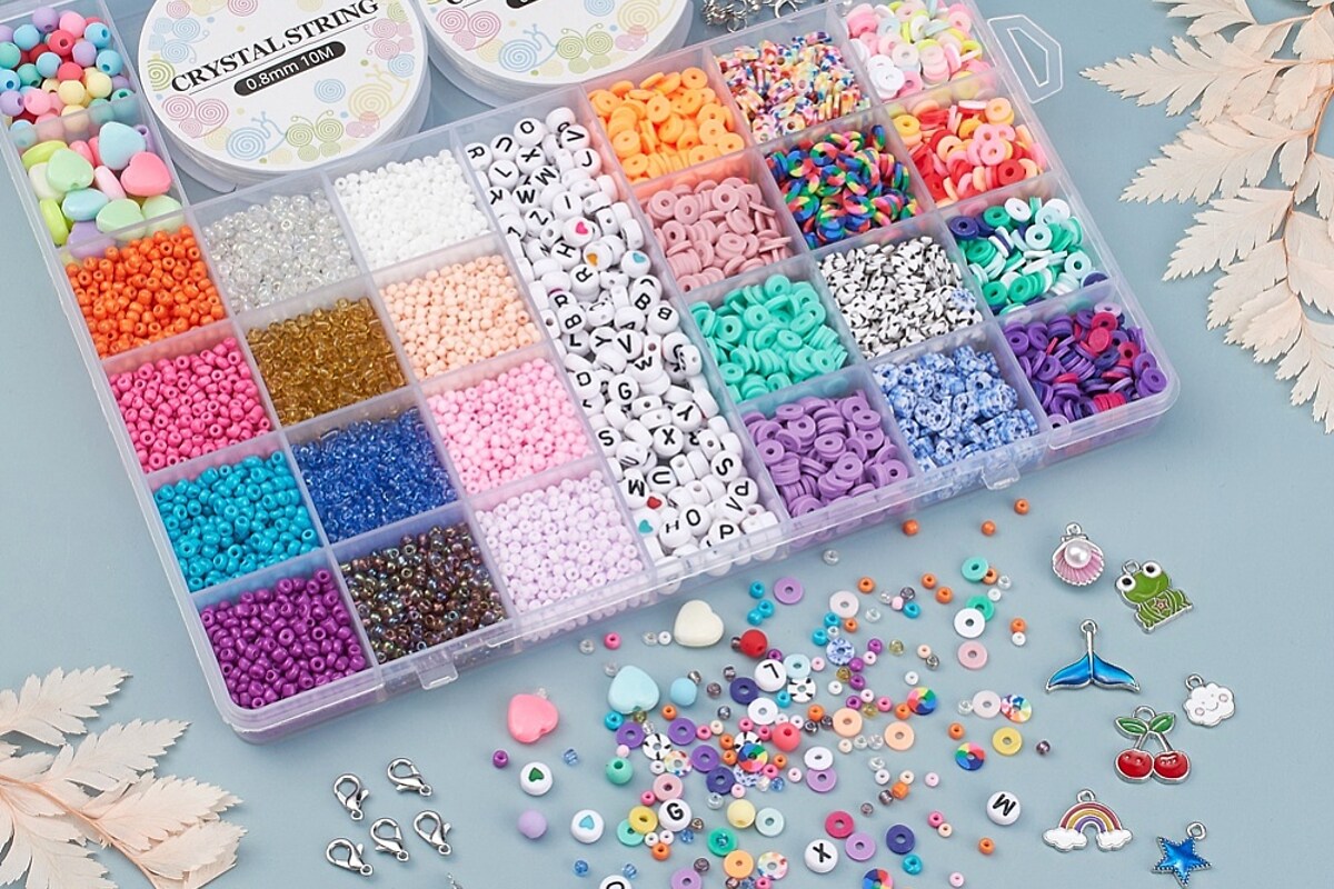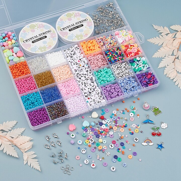 Margele set creativ, cutie 20x22,5x1,9cm cu 6140 buc. margele Heishi, margele de nisip, margele acrilice cu litere