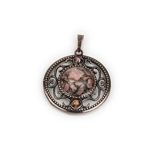 Pandantiv melc fosil si ametist cu agatatoare argintiu inchis...