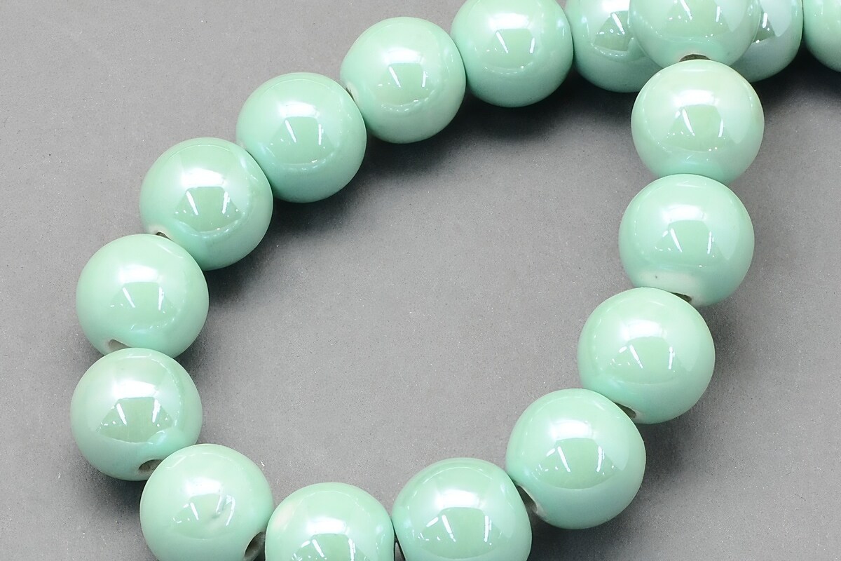Margele de portelan lucios sfere 6mm cu orificiul mare (1,5mm) - turcoaz