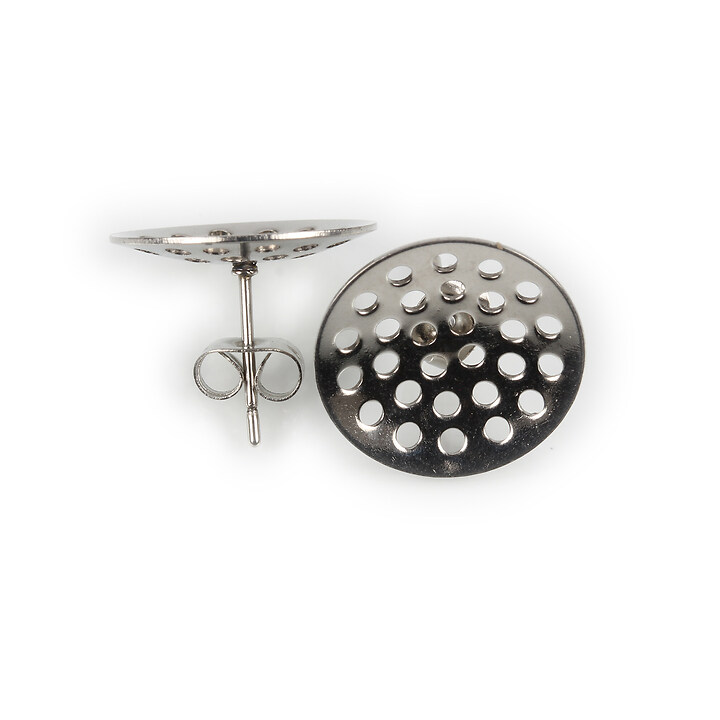 Tortite cercei otel inoxidabil 304 argintiu inchis platou cu gauri 16mm (2 buc.)