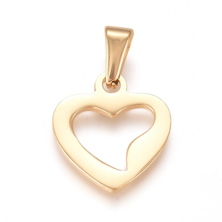 Pandantiv otel inoxidabil auriu 304, inima 18,5x16,5mm