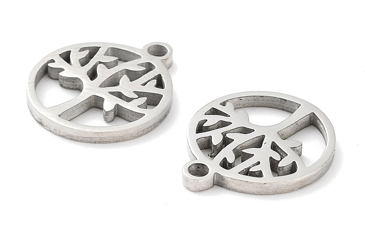 Charm otel inoxidabil antialergic 316L, copacul vietii - 14,5x10,5x1,5mm