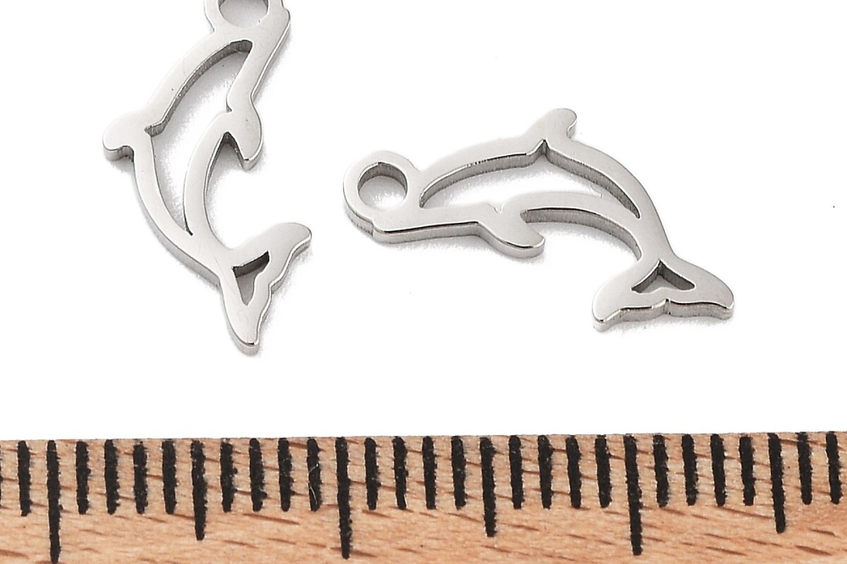 Charm otel inoxidabil antialergic 316L, delfin - 14x7x1mm