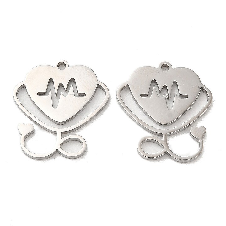 Charm otel inoxidabil 304, inima cu stetoscop - 17x16x1mm