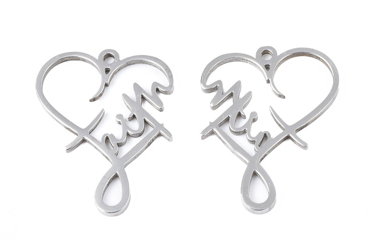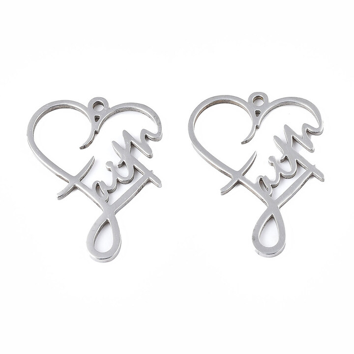 Pandantiv otel inoxidabil 201, inima Faith - 28,5x22x1,5mm