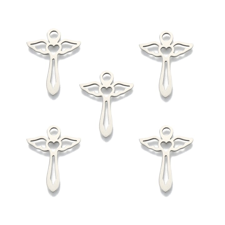 Pandantiv otel inoxidabil 201, cruce inger - 29,5x23,5x1,5mm