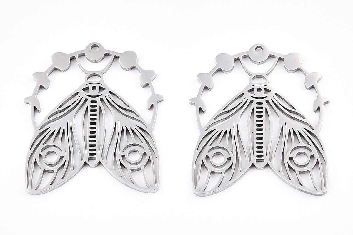 Pandantiv otel inoxidabil 304, molie cu fazele lunii 30x26x1,5mm