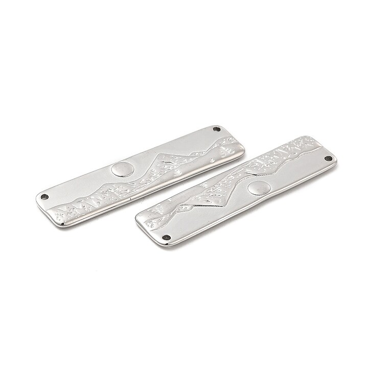 Pandantiv otel inoxidabil 304, dreptunghi cu peisaj montan 10x40x1,5mm