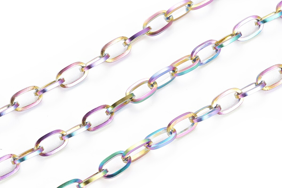 Lant otel inoxidabil placat IP (Ion Plating) multicolor, zale 6,5x4x1mm (49cm)