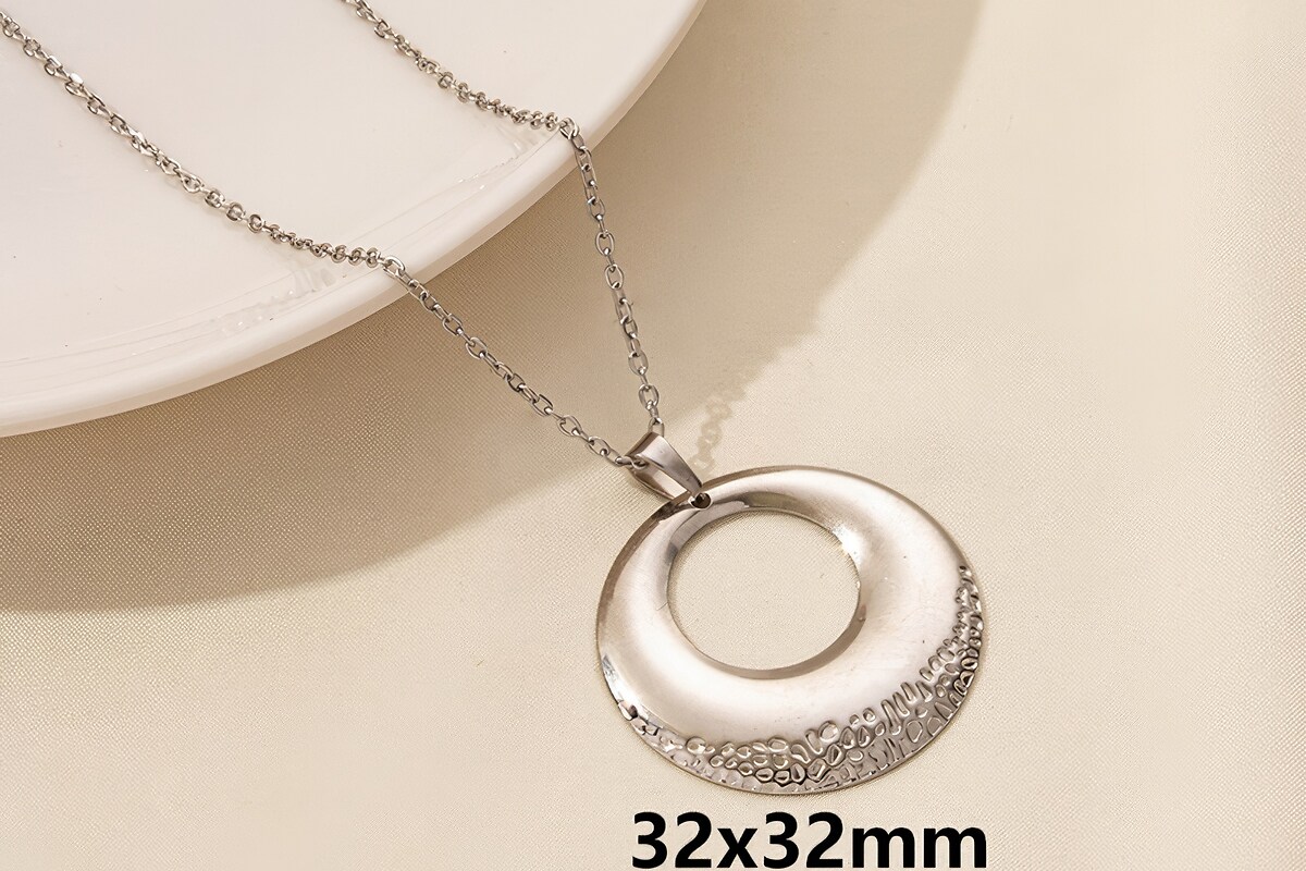 Lant otel inoxidabil 304 cu pandantiv rotund 32x32mm