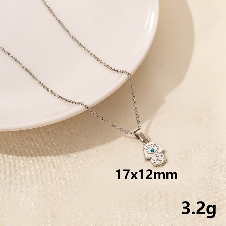 Lant otel inoxidabil 304 cu pandantiv mana Hamsa cu ochi stras albastru 17x12mm