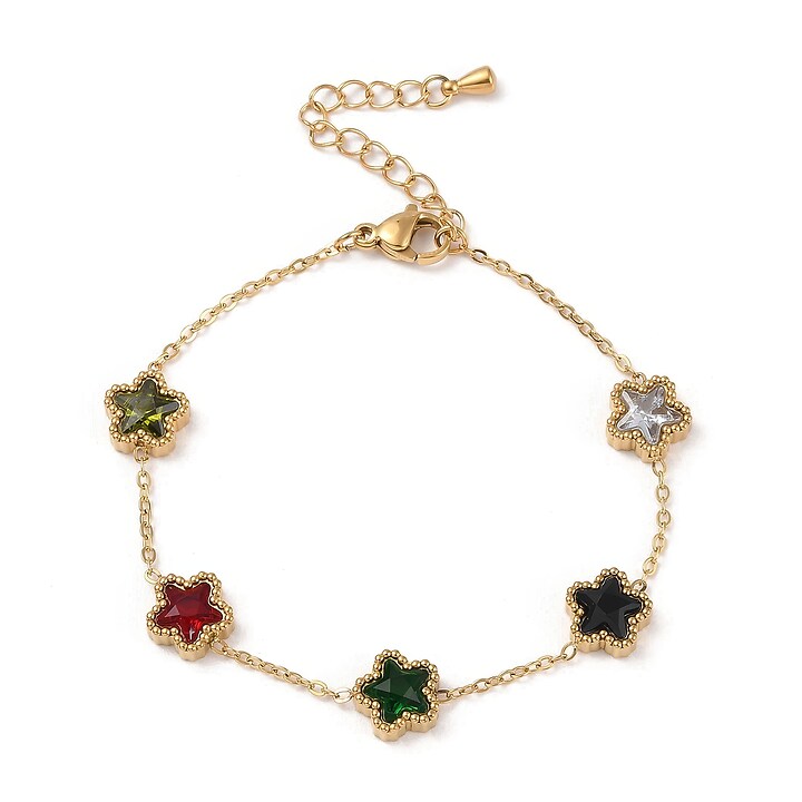Bratara cu stele multicolore, otel inoxidabil 304 auriu, lungime 16,2cm