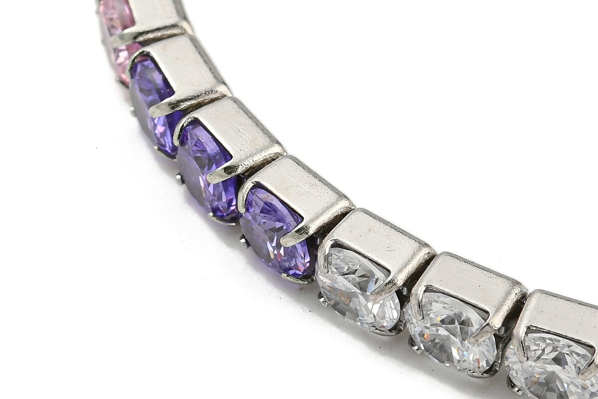 Bratara elastica cubic zirconia roz-mov, otel inoxidabil 304, diametru interior 5,3cm