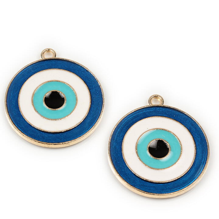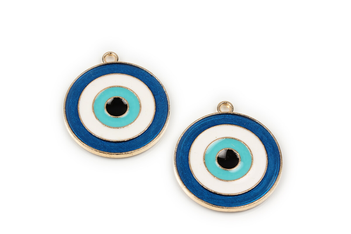Pandantiv auriu emailat ochi 27x24mm - nuante de albastru