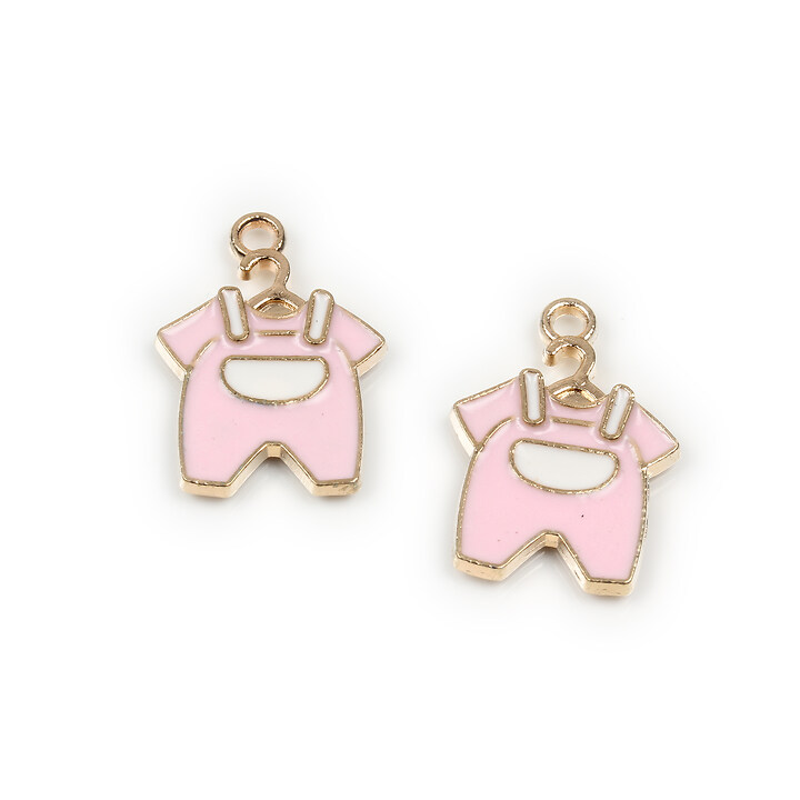 Pandantiv auriu emailat salopeta bebelus 21,5x15,5mm - roz