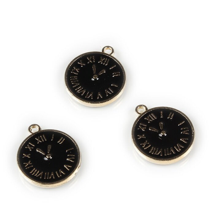 Pandantiv auriu cu email negru, ceas 17x14mm