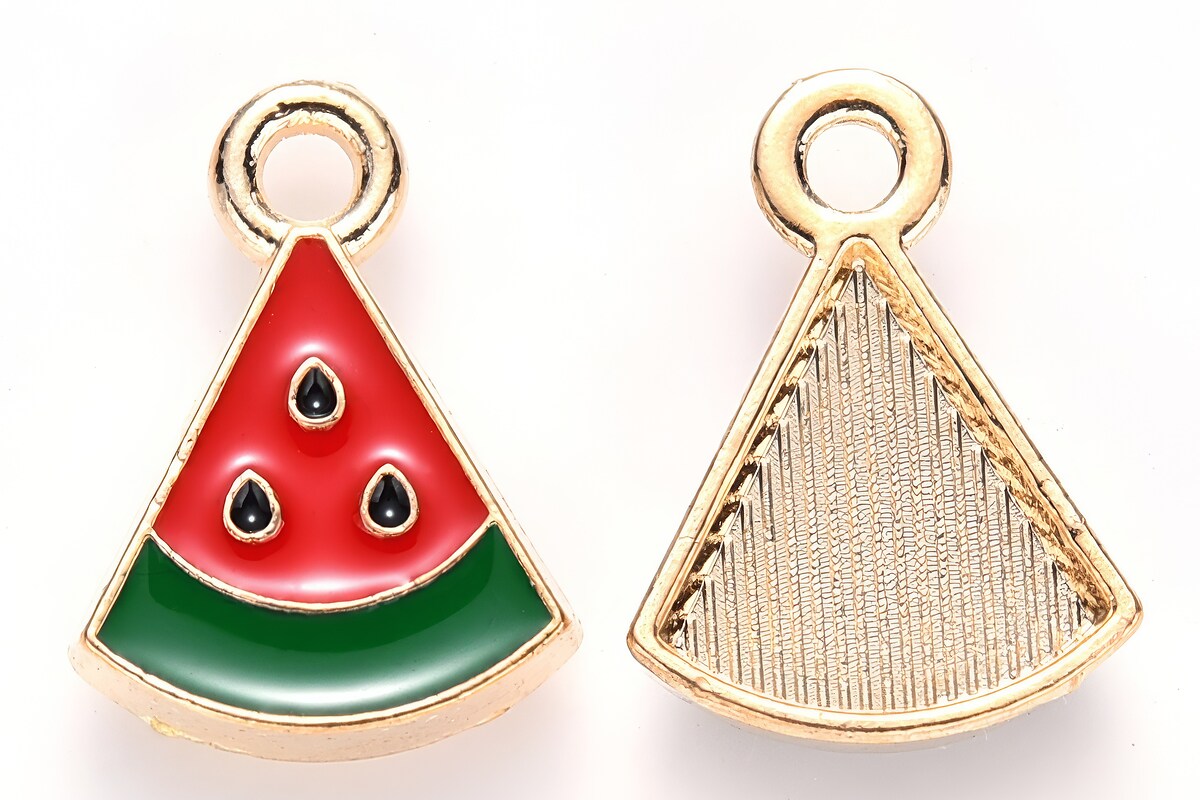 Charm auriu emailat felie de pepene 16x12x3mm