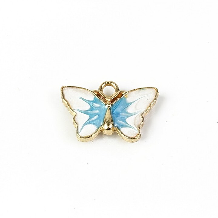 Charm mini pandantiv auriu emailat fluture 14x20mm - albastru