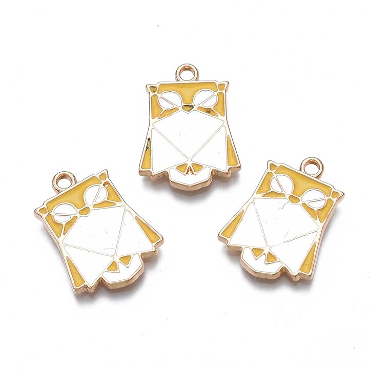 Charm auriu emailat origami bufnita 21x15mm