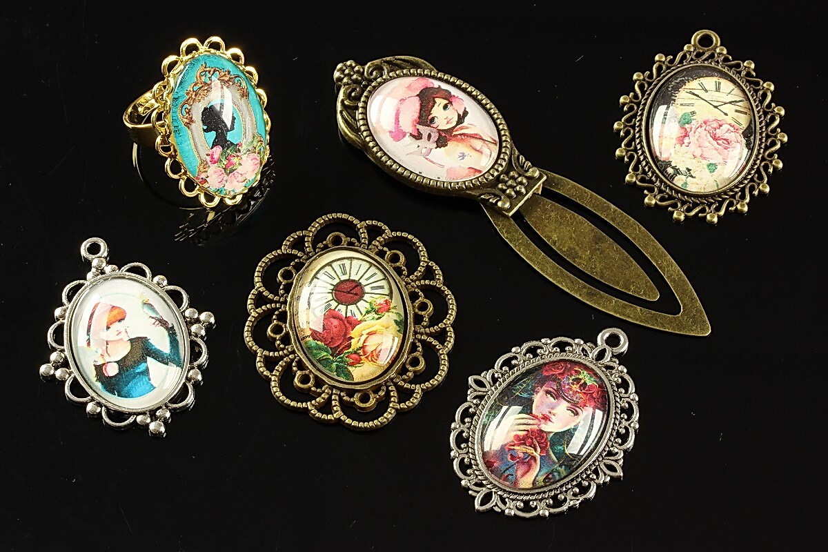 Cabochon sticla 25x18mm "Journey in the past" cod 190