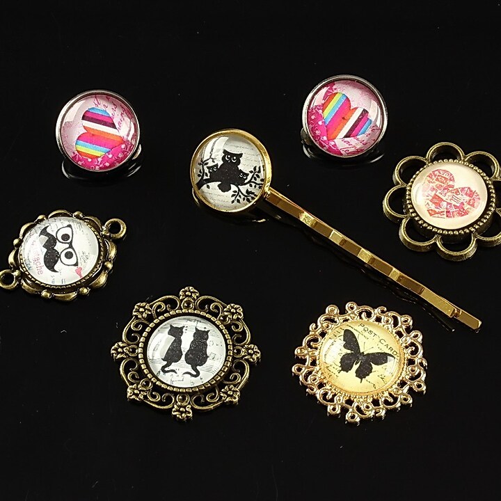 Cabochon sticla 14mm "Polka Doted Line" cod 438