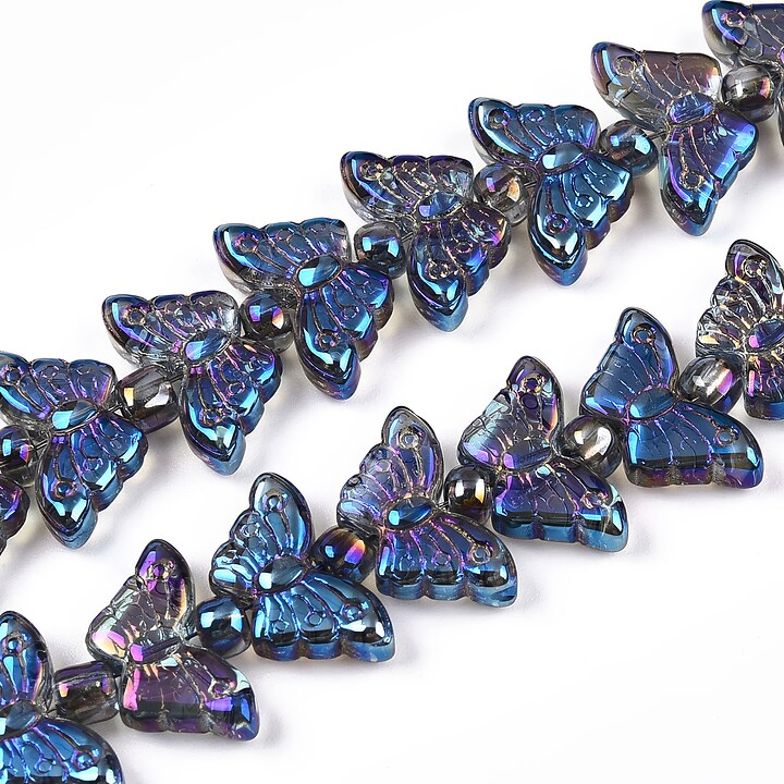 Margele sticla fluture 7,5-8x15x4mm (sirag) - electroplacat albastru mov