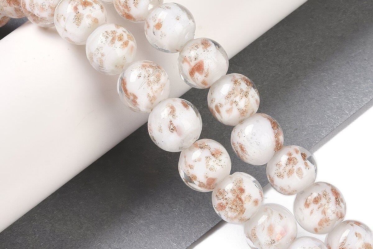 Sirag margele de sticla lampwork gold sand aprox. 8mm - alb cu foita aurie