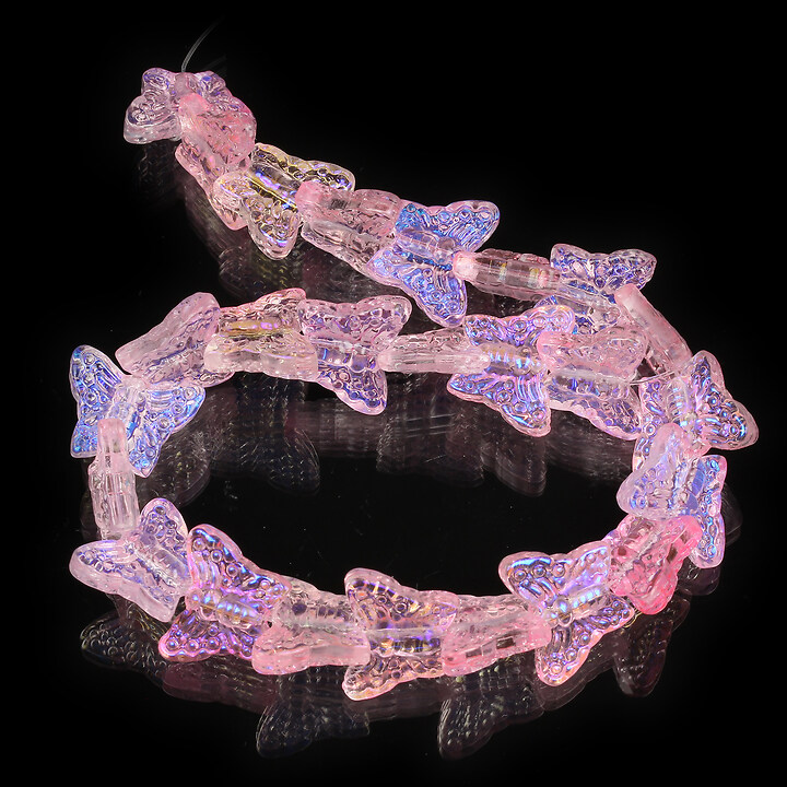 Sirag margele de sticla fluture 12,5x15,5x5mm - roz