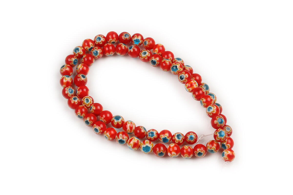 Sirag margele de sticla lampwork Millefiori sfere 6mm - rosu si albastru