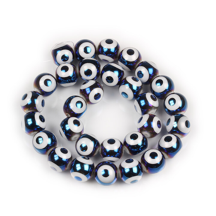 Sirag margele de sticla electroplacate model evil eye sfere 10mm - albastru