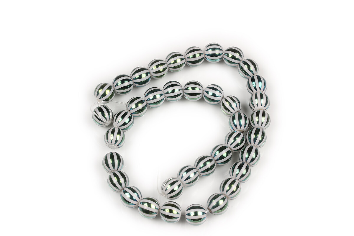 Sirag margele de sticla rotunde cu linii electroplacate 8mm - alb placat verde