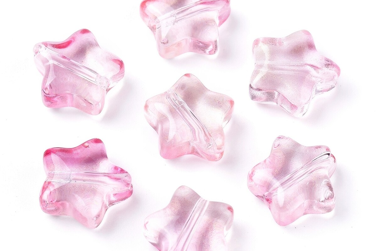 Margele de sticla cu sclipici stea 8,5x8,5mm - roz