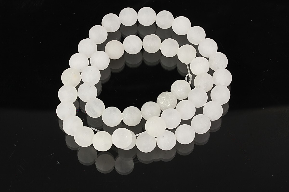 Sirag jad alb frosted (mat) sfere 8mm