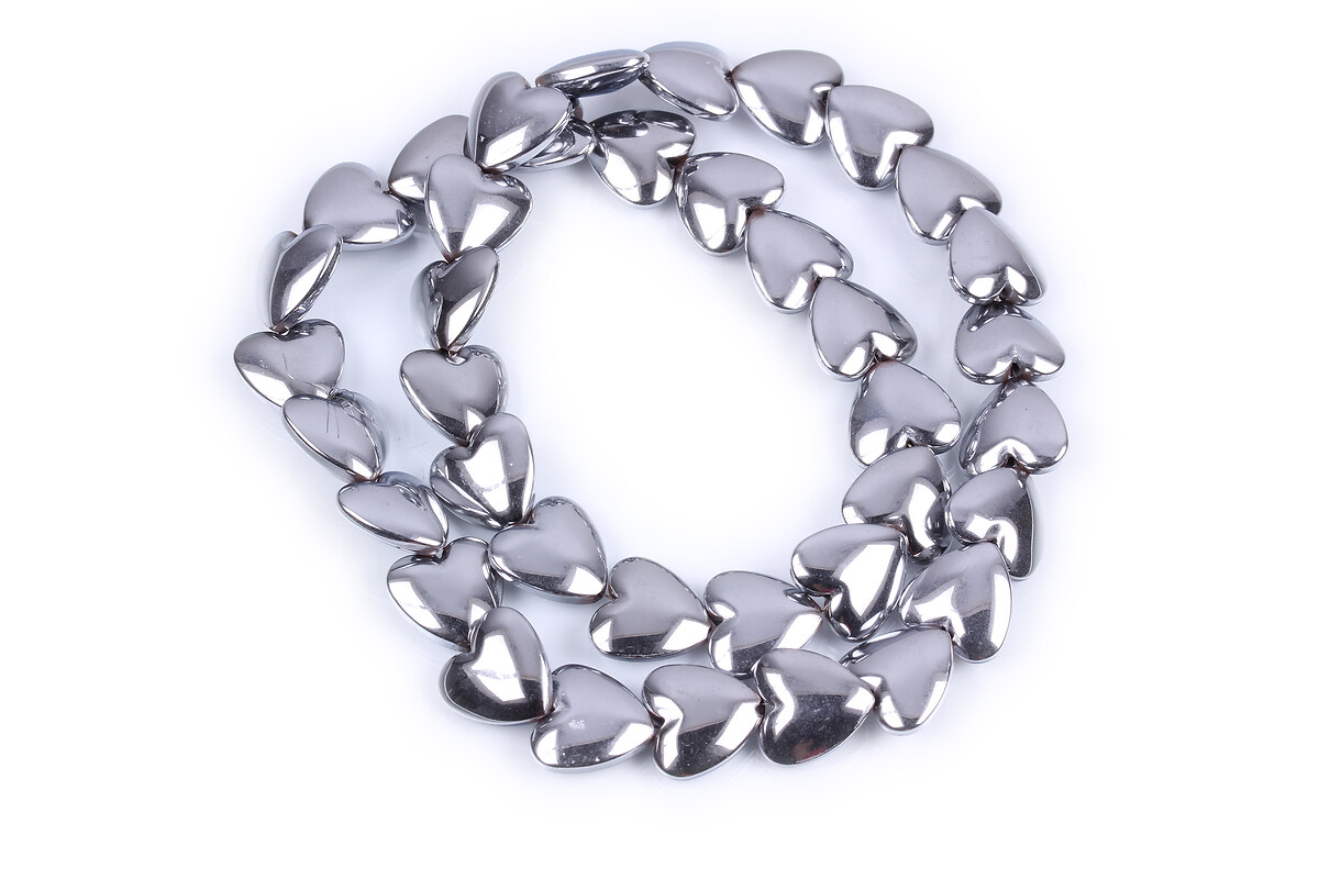 Margele hematit inima, electroplacat argintiu inchis, 12x12x4mm (sirag)