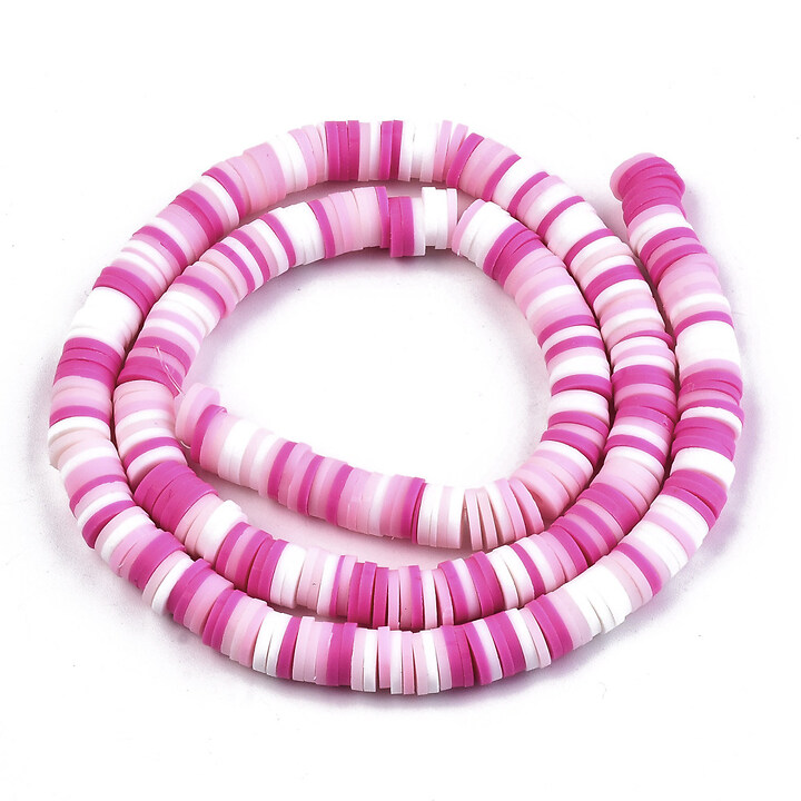 Sirag margele Heishi rondele din lut polimeric 6x1-1,5mm - mix roz