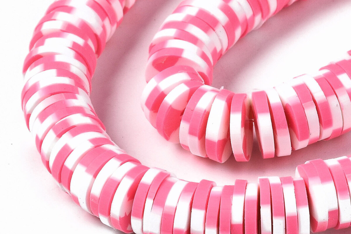 Sirag margele Heishi rondele din lut polimeric 8x0,5-1mm - roz alb