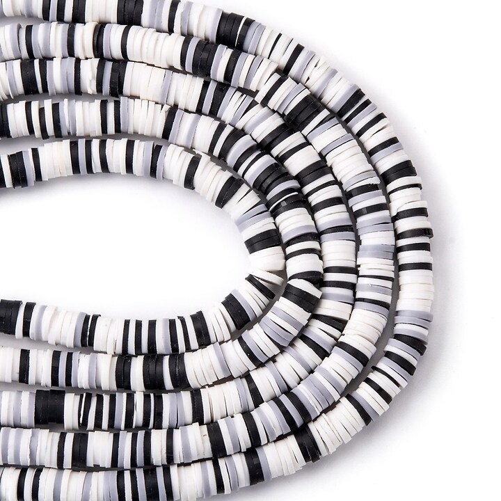 Sirag margele Heishi rondele din lut polimeric 6x0,5-1mm - mix alb negru gri