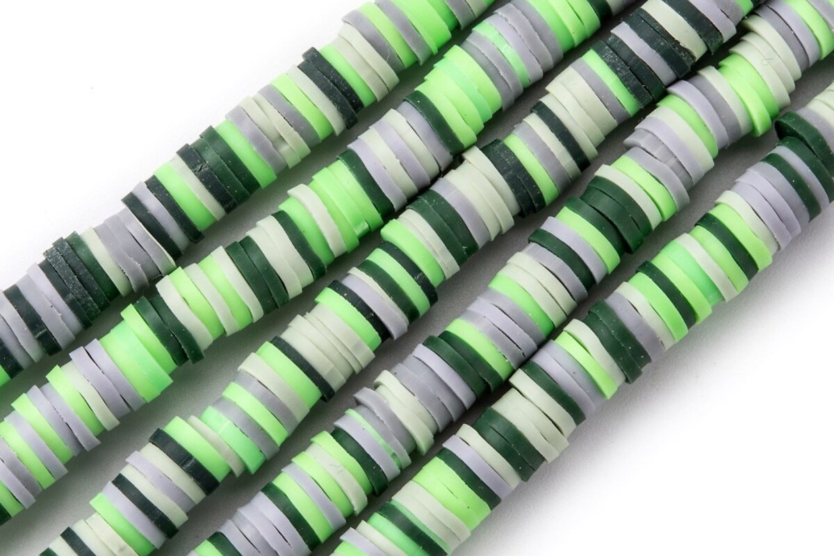 Sirag margele Heishi rondele din lut polimeric 6x0,5-1mm - mix verde gri
