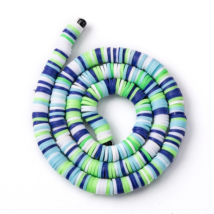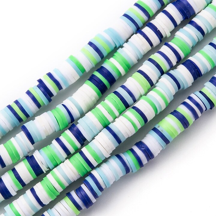 Sirag margele Heishi rondele din lut polimeric 6x0,5-1mm - mix albastru alb