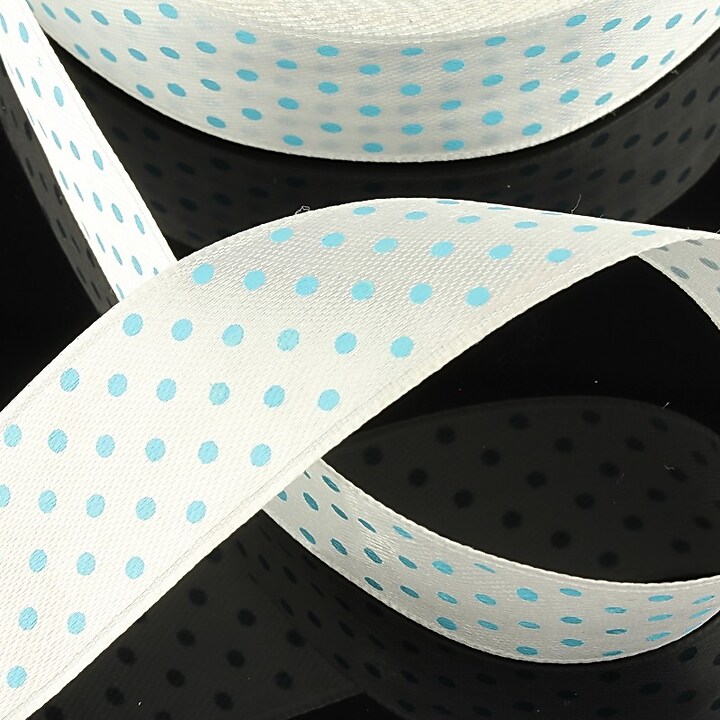 Panglica saten alba cu buline albastre latime 2,5cm (1m)
